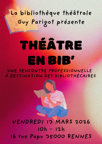 Rendez-vous le vendredi 13 mars de 10h à 12h à la bibliothèque théâtrale Guy Parigot, au 16 rue Papu 35000 RENNES (dans la cour de l’ancienne école, face à la Biocoop), pour ce temps de rencontres et d'échanges.